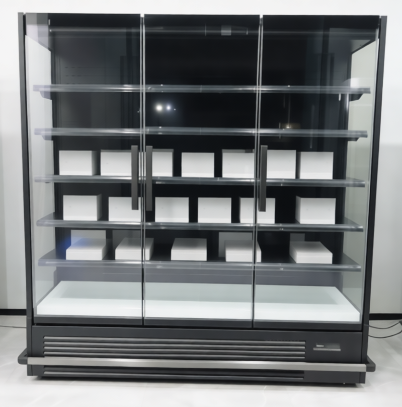 The vertical hinged system, Panorama2, is a premium solution for normal temperatures that demands maximum field of vision, and goes a step further to cover hinges with tempered glass.